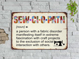 The Sewciopath Definition Sewing Room Metal Sign not only adds a touch of style to your sewing space but also showcases your passion for sewing. With its humorous and playful definition of a "sewciopath," it brings a smile to your face every time you enter your sewing haven.
